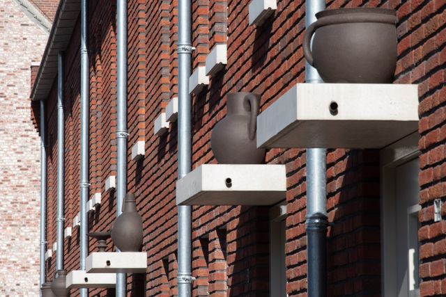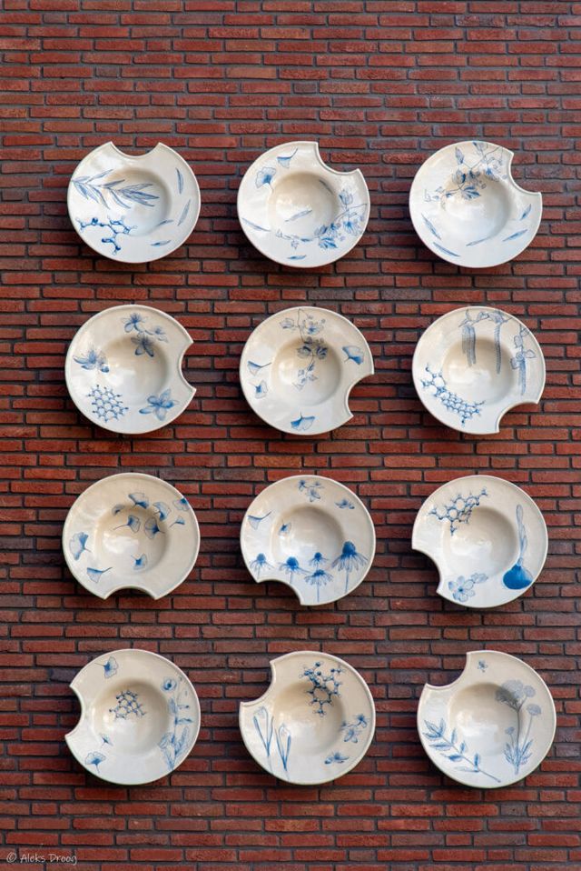Het gebruiksaardewerk, zoals kannen, kruiken en olielampen, zijn vertaald naar keramische objecten. Op de luifel, boven de voordeur, is bij elke woning aan het hofje Vredenburgh een uniek keramisch object bijgeplaatst. Het zijn uitvergrootte objecten, waarvan scherven in de putten zijn gevonden, zoals een stoofpot, een olielamp of een apothekers pot. Deze objecten hebben inmiddels de naam Vondelingen gekregen. Ze worden nu ook in aardwerk met verschillende kleuren gemaakt en verkocht door Cor Unum ceramics & art.