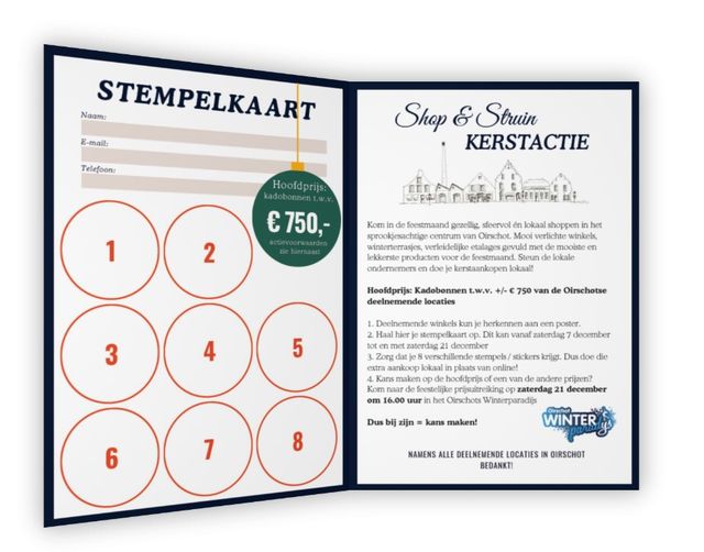 - Alleen volle stempelkaarten met van 8 stempels, naam, email en telefoonnummer tellen mee.