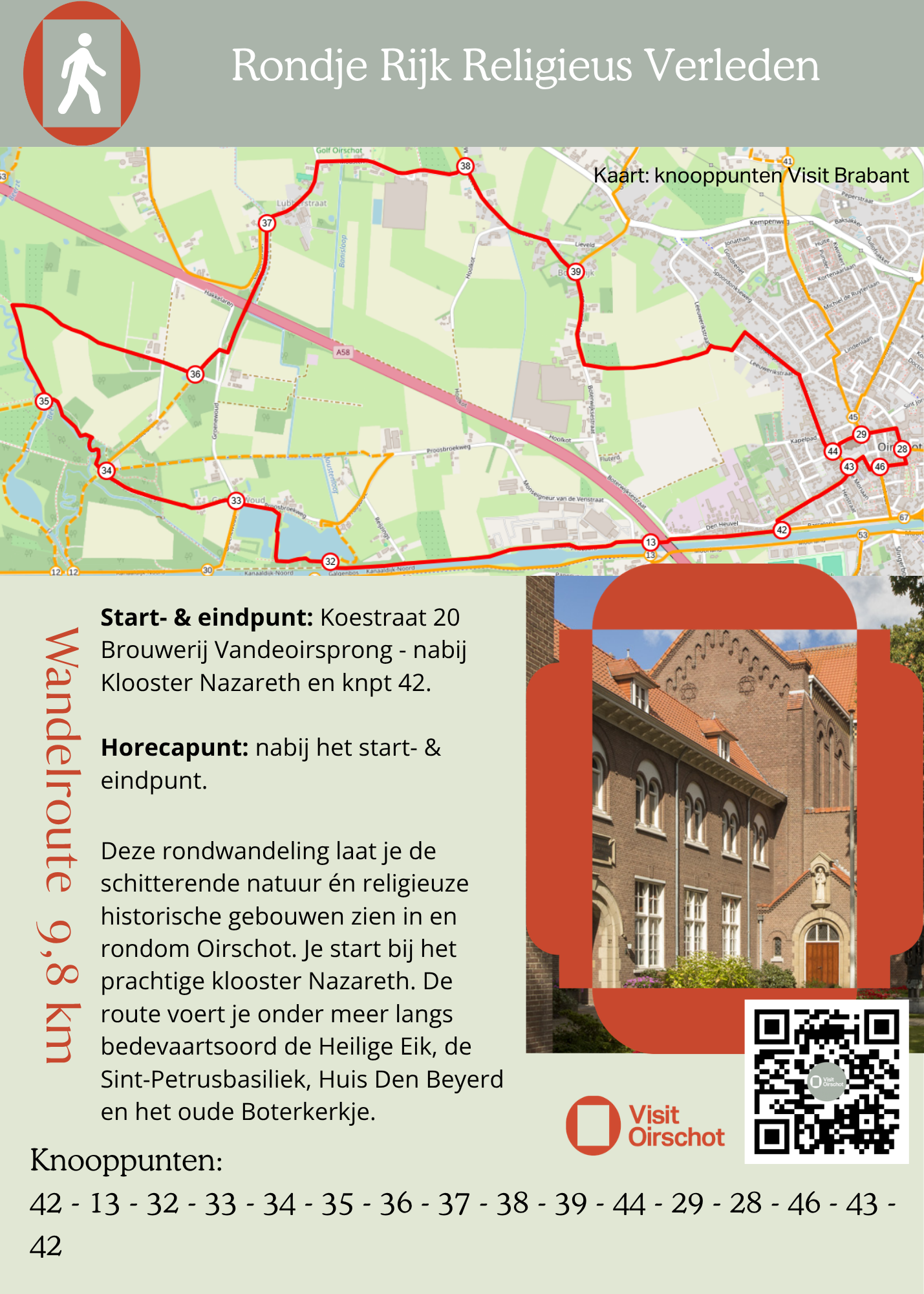 Deze rondwandeling laat je de schitterende natuur én religieuze historische gebouwen zien in en rondom Oirschot. Je start bij het prachtige klooster Nazareth. De route voert je onder meer langs bedevaartsoord de Heilige Eik, de Sint-Petrusbasiliek, Huis Den Beyerd en het oude Boterkerkje.