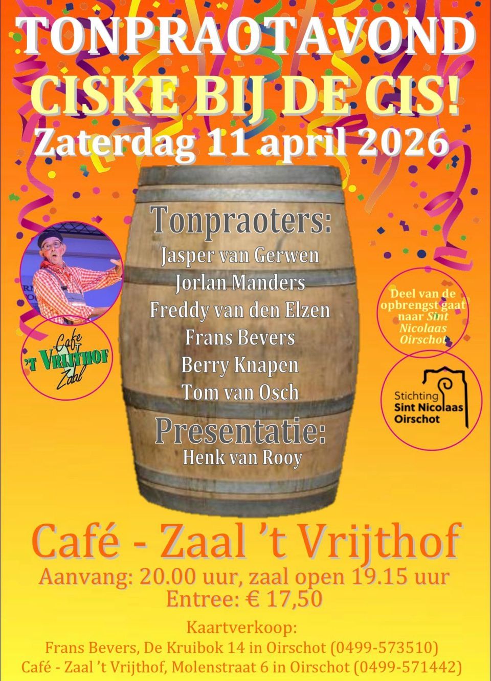 Met tonpraoters; Jasper van Gerwen, Jorlan Manders, Freddy van den Elzen, Frans Bevers, Berry Knapen, Tom van Osch. Presentatie door Henk van Rooy.