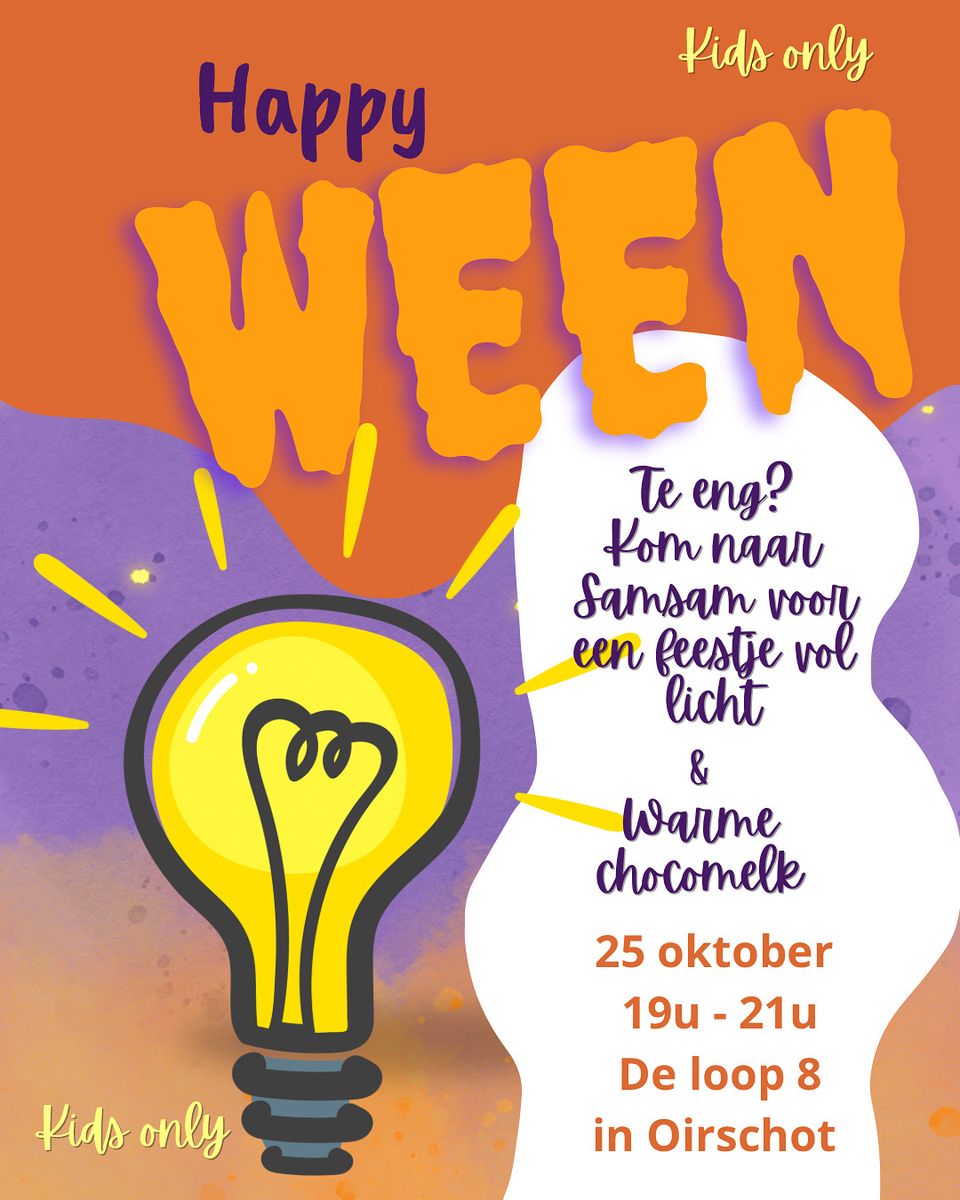 Liever geen spinnenwebben… Liever geen spoken… Maar liever een feestje vol licht? Op 25 oktober organiseren we HAPPYWEEN, een klein feestje in onze kinderschoenenwinkel speciaal voor jullie. Dus wordt 't even te eng? Kom dan naar Samsam want daar is t licht 💡 💡Van 19u-21u for kids only ( tot 12 jaar) 💡Warme chocolademelk 💡Spelletjes en licht. Waar? 📍 de Loop 8 in Oirschot Op 25 oktober HAPPYWEEN bij Samsam. Kom je ook?